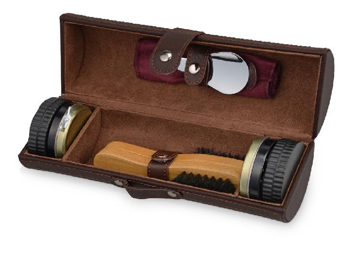 Подарочный набор для чистки обуви включает в себя 8 предметов, которые предназначены для поддержания чистоты вашей обуви. В комплект входят чистящие средства, так что не придется покупать их отдельно. Набор упакован в солидный футляр "под кожу", который удобно брать в дорогу, в командировку. Набор представлен также и в других цветах.