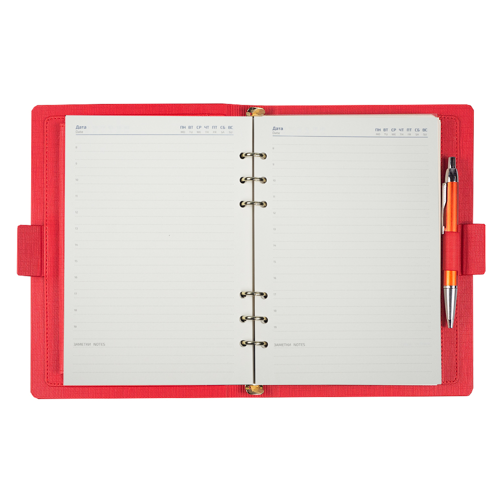 • Кольцевой механизм золотого цвета в черном, синем и красном цвете суперобложки.