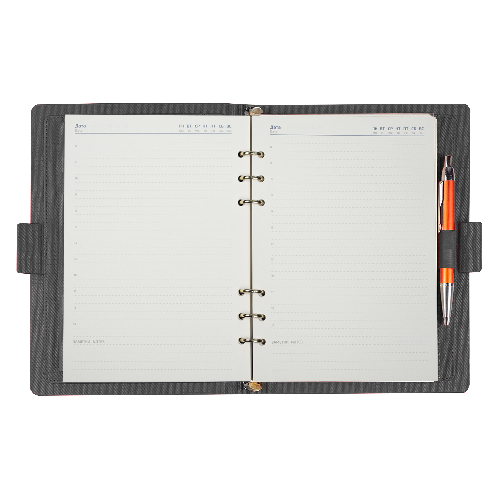 • Кольцевой механизм серебристого цвета в сером цвете суперобложки.
