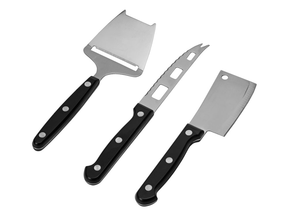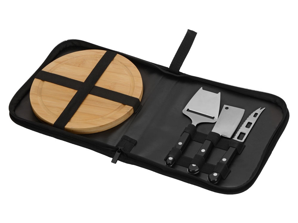 Набор для сыра не изменяет общему стилю Fabrizio: доска и три сырных ножа упакованы в чехол из искусственной кожи, который прекрасно сочетается по текстуре и цвету с другими изделиями серии. Чехол на молнии раскрывается как папка, надежно защищая принадлежности от механических повреждений и позволяя компактно и удобно хранить принадлежности. Для подвешивания и переноски предусмотрена текстильная петля на корешке. Внутри чехол имеет фиксирующие резинки для каждого ножа и доски. Три ножа позволяют грамотно подойти к подаче и сервировке практически любого сорта сыра. - Сырный топорик предназначен для нарезки полутвердых и твердых сортов — чеддера, фонтина, колби и грюйера. Благодаря ему вы сможете нарезать эти сорта на ровные прямоугольники или кубики. - Узкий нож — для мягких и средней мягкости сортов: воздушные карманы, образованные отверстиями, не дадут сыру прилипнуть к полотну и помогут ровно нарезать тонкие ломтики. - Сырный рубанок — для полутвердых и умеренно твердых сыров, с ним вы можете нарезать тонкими ломтиками алтайский, гауду, буковинский, литовский сорта. Доска выполнена из бамбука, легко моется и подходит как для нарезки, так и для сервировки закусок. - нержавеющая пищевая сталь - чехол можно брендировать тиснением, сочетается с другими товарами серии Fabrizio — идеальный вариант для сета - три ножа подходят практически для всех видов сыра - удобное и компактное хранение