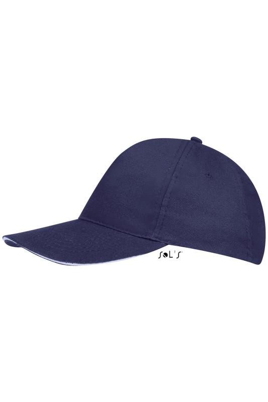 Бейсболка из хлопок с жестким козырьком. •5 клиньев без шва на лбу. •4 обшивных люверса для вентиляции. •Регулируемая застежка на липучке сзади. •58 см - минимальный размер, с помощью застёжки его можно увеличить до необходимого.