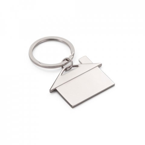Брелок из металла в форме домика. Данный брелок под нанесение поставляется в подарочной коробке.