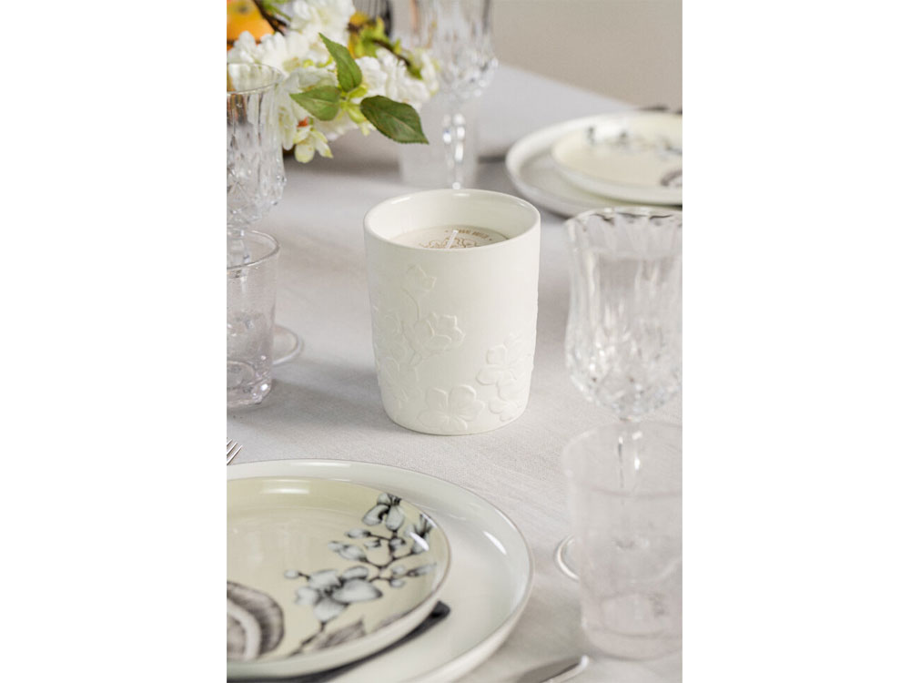 Ароматическая свеча Свеча Valerie Concept из натурального соевого воска с хлопковым фитилем и цветочным ароматом в фарфоровом кашпо.