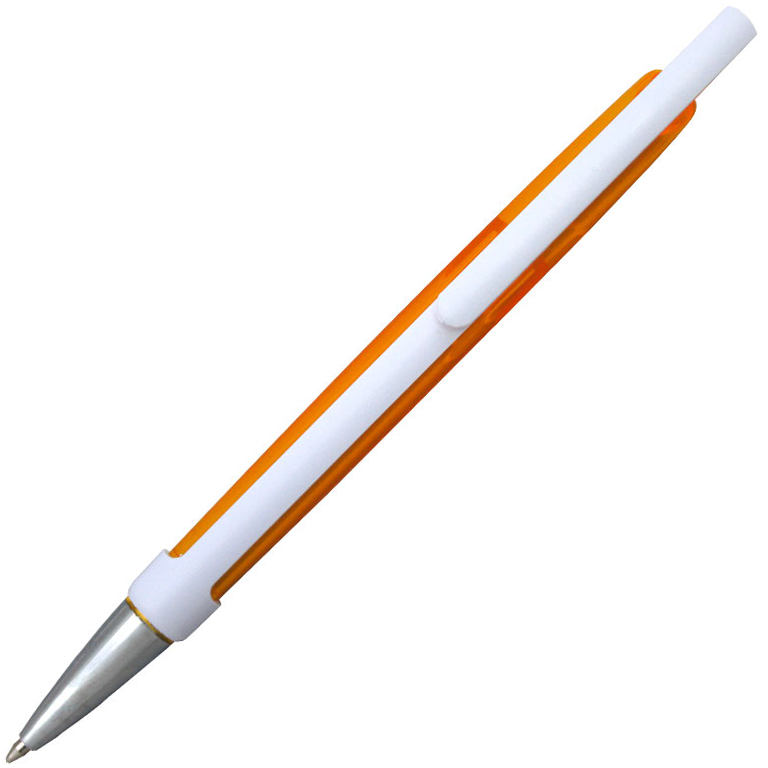 Ручка шариковая, пластиковая, прозрачная, оранжевая/белая