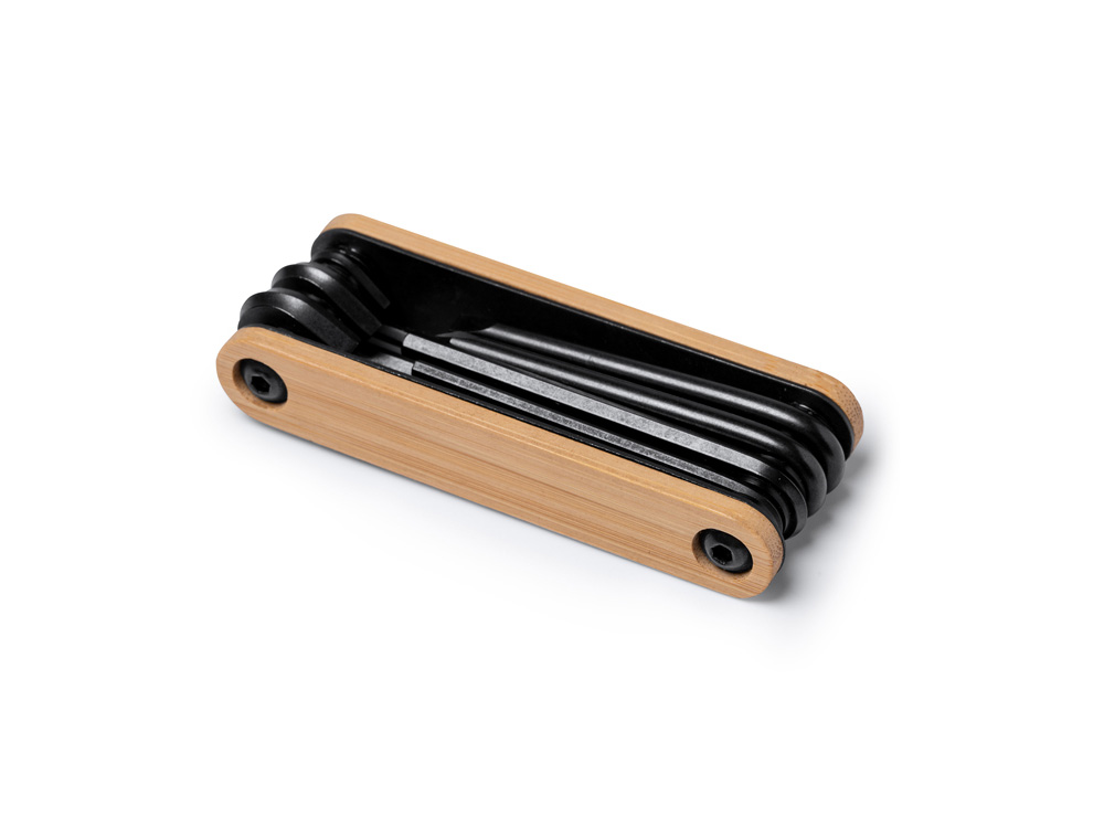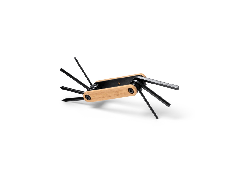 Многофункциональный инструмент Niner с отвертками и шестигранными ключами. Накладки на корпус из бамбука.