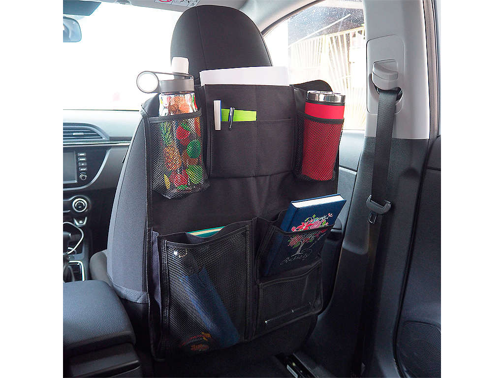 Органайзер защищает спинку сидения от загрязнений и позволяет компактно разложить все необходимые вещи. Найдется место для журналов, ручек и карандашей, очков, гаджетов, бутылки с водой, зонта и других необходимых в дороге мелочей.